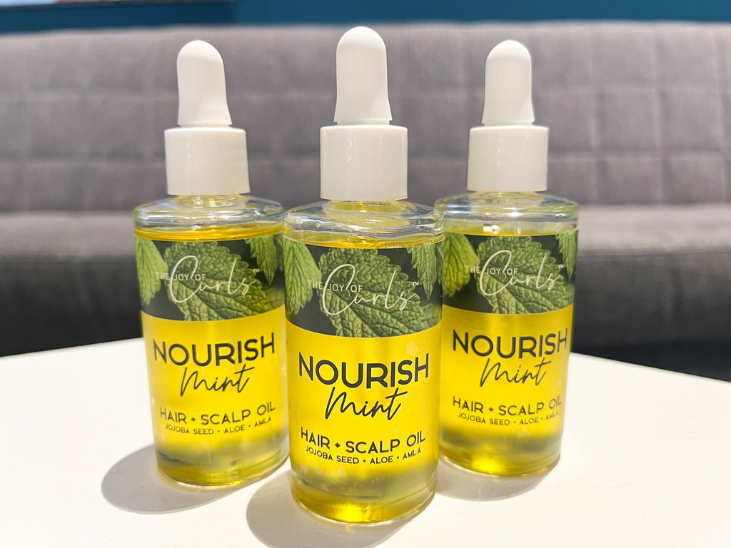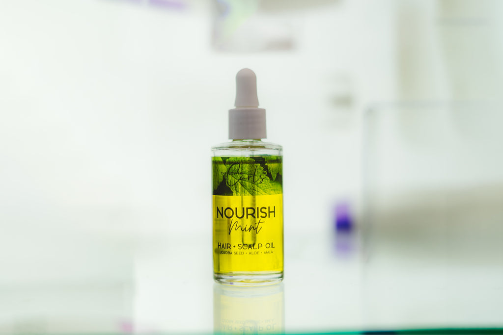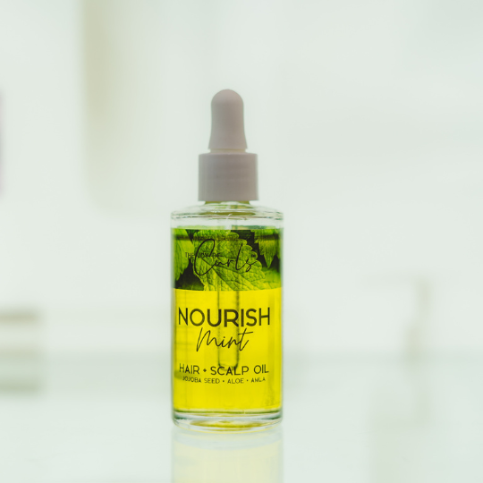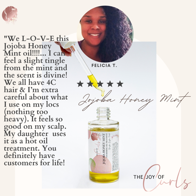 Made in small batches, this premium hair growth oil was carefully crafted to select nature's finest ingredients for hair. Each nutritive ingredient is known for abilities to stimulate the scalp and penetrate hair strands to support your efforts to lengthen, strengthen and protect your tresses. This radiant oil contains organic jojoba, amla, aloe vera, black castor, shea, peppermint essential oil, and a custom natural honey mint fragrance blend. Eliminates frizz, conditions, boosts shine, improves strength.